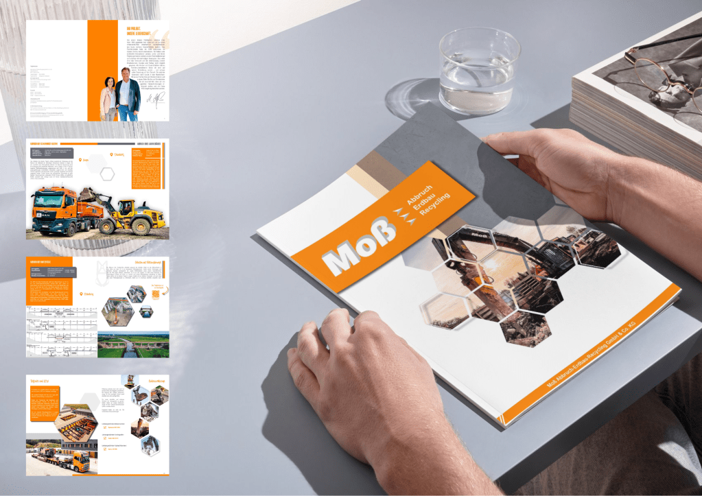Die neue Unternehmensbroschüre dient als zentrales Image- und Vertriebsinstrument. Sie vermittelt auf einen Blick, wofür Moß steht, welche Leistungen angeboten werden und welche Projekte das Unternehmen realisiert – von Gewerbeimmobilien über Industrieanlagen bis zu komplexen Brückenabbrüchen.